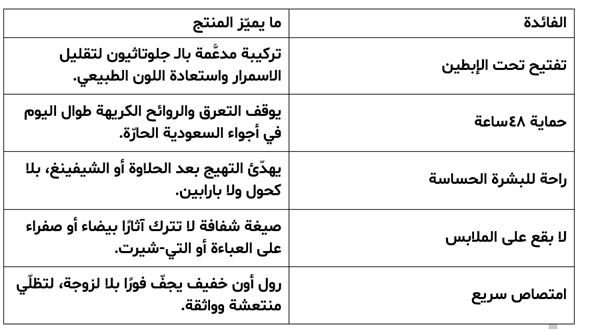 ملاحظة لمنتجات العناية : معلومات وصف المنتج مقدمة لأغراض التثقيف ولا تغني عن استشارة الطبيب المختص.
