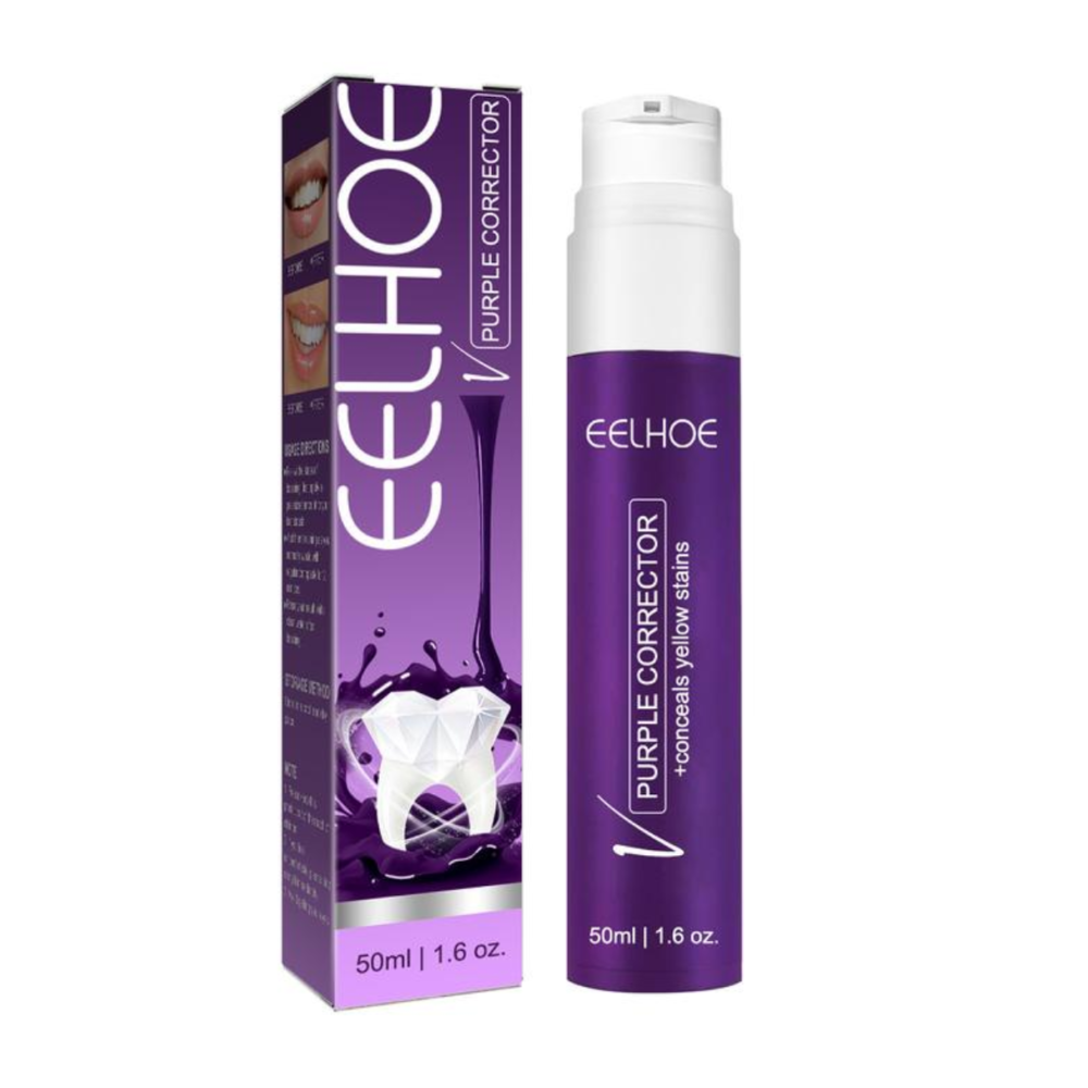 استمتعي بابتسامة مشرقة وأسنان بيضاء مع معجون تبييض الأسنان الأرجواني EELHOE