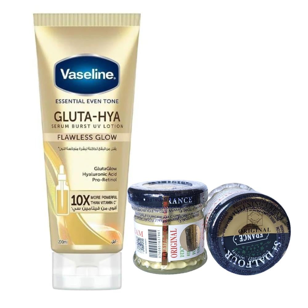 ✨ ودّعي التصبغات والبهتان مع الثنائي الفعّال لتفتيح وترطيب البشرة!كريم سان دالفور + لوشن فازلين جلوتا هيا = بشرة موحدة، ناعمة، ومشرقة من أول لمسة! 💖